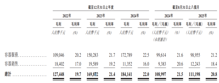 于2022年度、2023年度、2024年度、2025年截至8月31日止八个月,公司对应毛利润率为19.7%、21.4%、22.0%及20.8%。