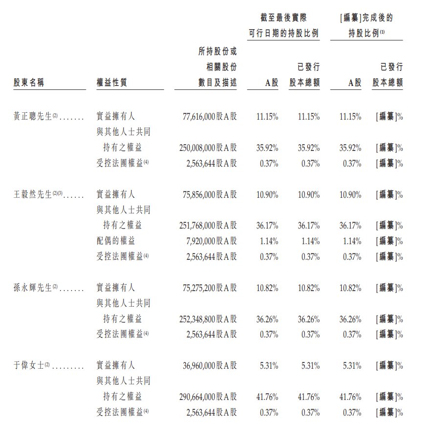 招股书提到,于[编纂]后,黄正聪先生、王毅然先生、孙永辉先生、于伟女士、周开琪先生及尤天远先生将共同构成香港上市规则所指的一组控股股东。